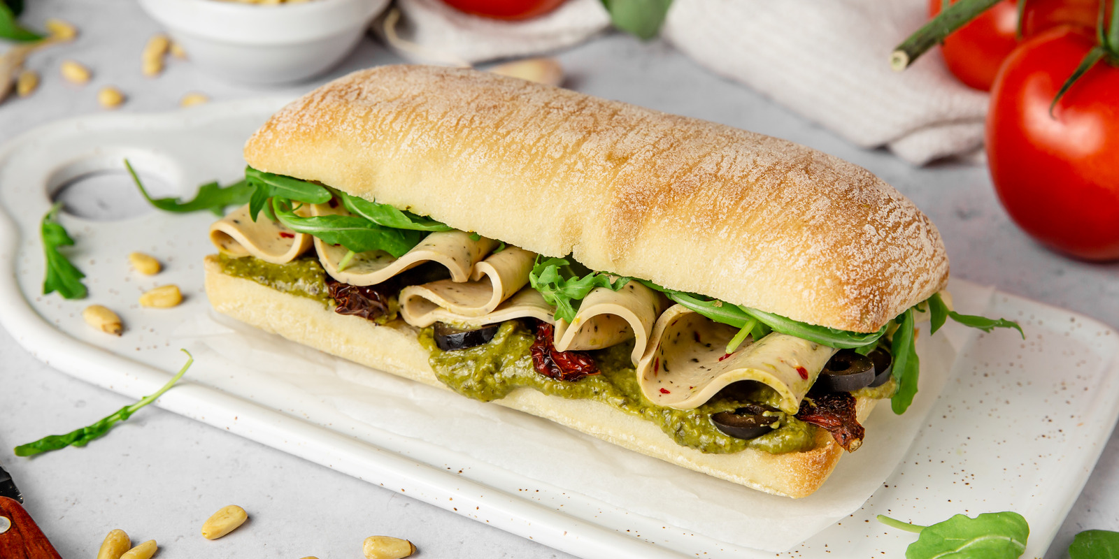 Sur la route des vacances ! Avec des herbes méditerranéennes, du poivron, des olives et de l’ail, ces tranches vous proposent un véritable voyage au soleil ! A base de protéines de pois, sans gluten ni soja, elles sont aussi 100 % végétales. C’est le moment de vous laisser embarquer : Apéro, sandwiches, salades, pizzas. C’est l’été dans l’assiette !