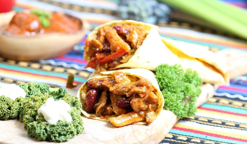 • Étaler les tortillas et y répartir la garniture chaude. Rouler les tortillas. Servir sur une feuille de salade, accompagné de yaourt de soja.